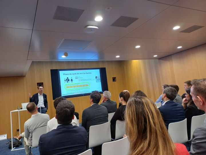 Axel Tasiaux referierte über die aktuellen Büroformen und wie man die Mitarbeitenden für Arbeit im Büro begeistern kann. Neben der Funktionalität wird die Schönheit des Arbeitsplatzes zunehmend wichtig. Dabei sollen die Mitarbeitenden stark einbezogen werden, da sich im Schnitt ca. 10 Mitarbeiter 4 Arbeitsplätze teilen. Dies geht, dank der hohen Verbreitung von Homeoffice, Desksharing, Teilzeitpensen, bzw. Arbeit ausserhalb der Büros.